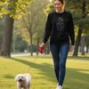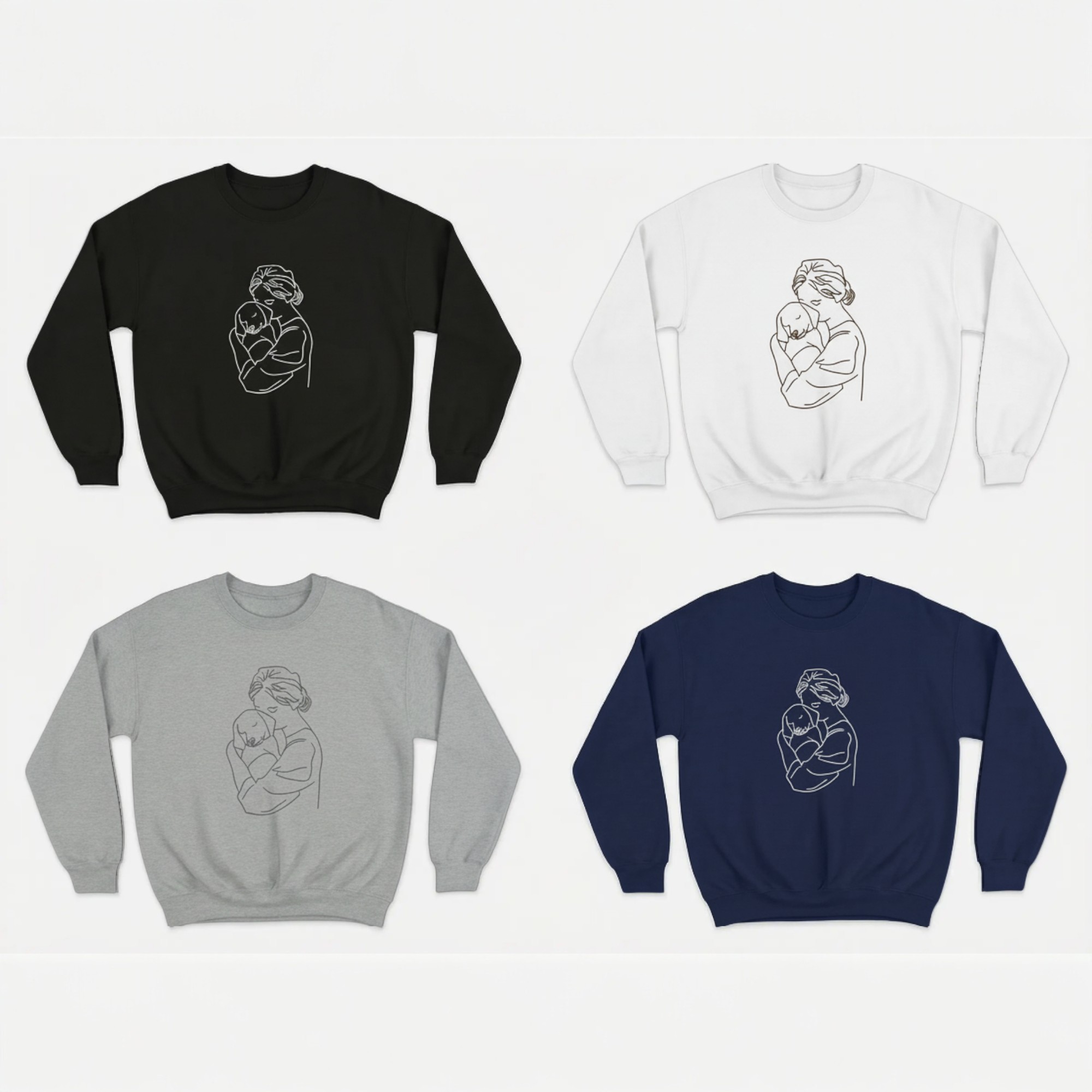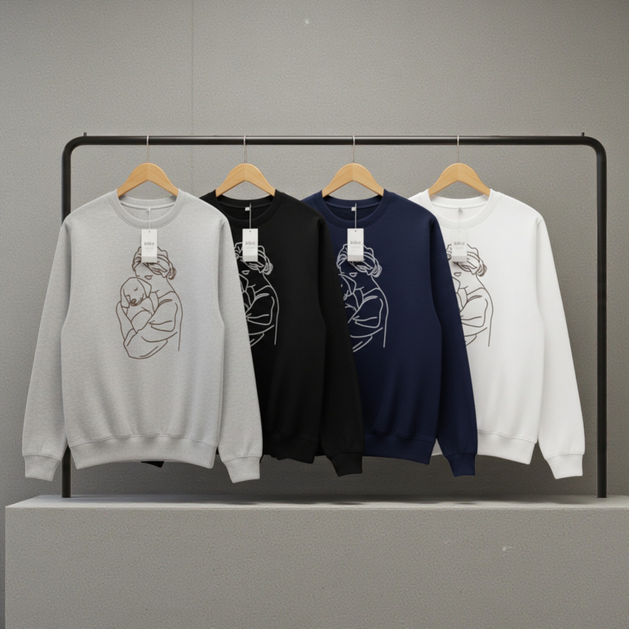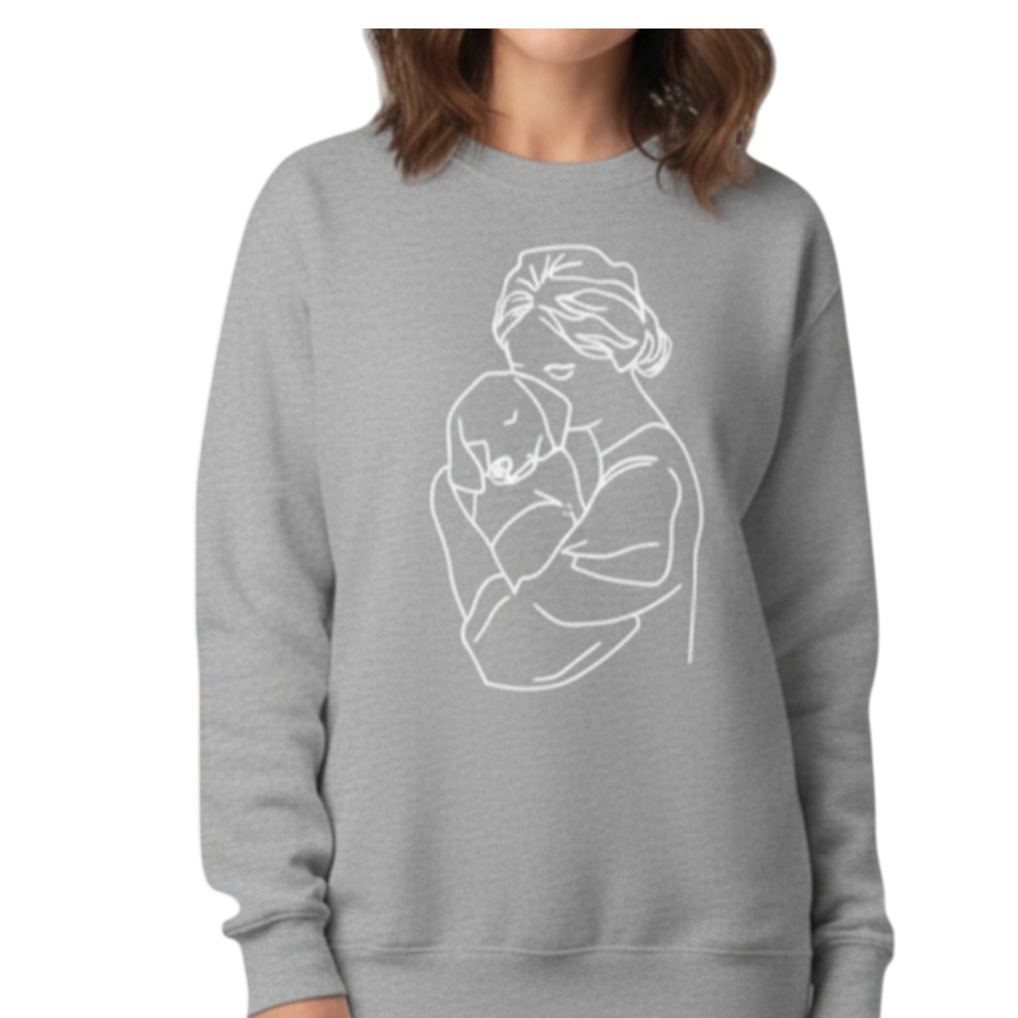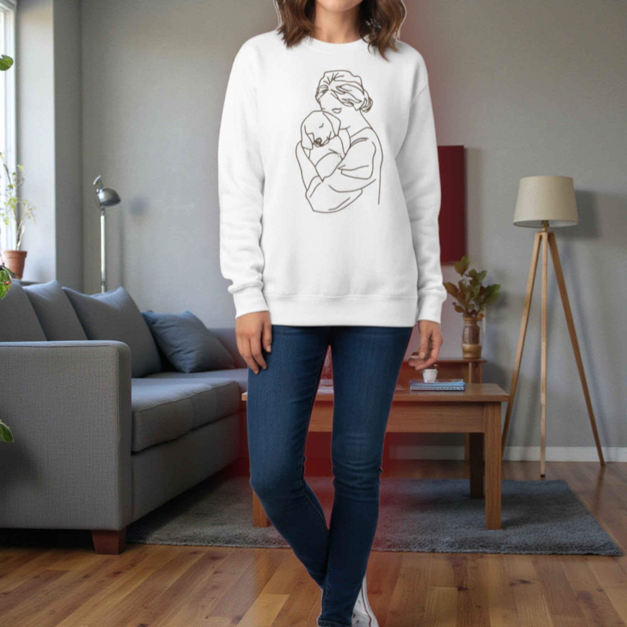 This dog mum sweatshirt personalised design is created for women who adore their dogs. The elegant embroidery shows a woman gently hugging her dog, capturing a moment of comfort, love, and connection.