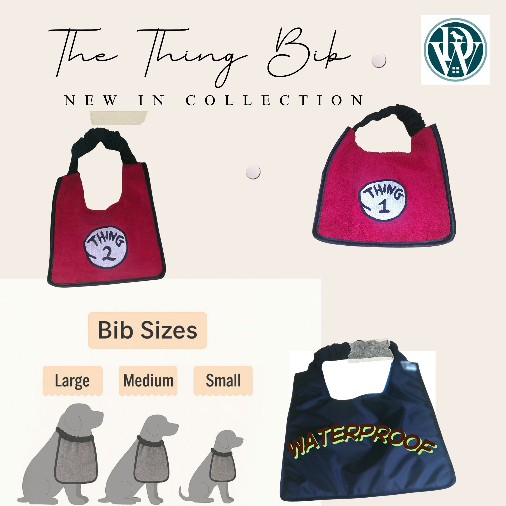 The Comic Style Dog bibs are machine washable and made for daily use. The elastic neck strap fits comfortably and securely on a medium, and large breeds.