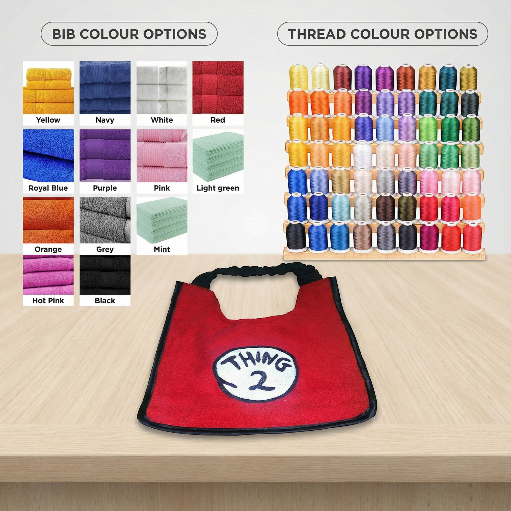 Each bib is made from soft towelling fabric and features high-quality full embroidery, not printed graphics. This ensures a bright, durable finish that lasts wash after wash.