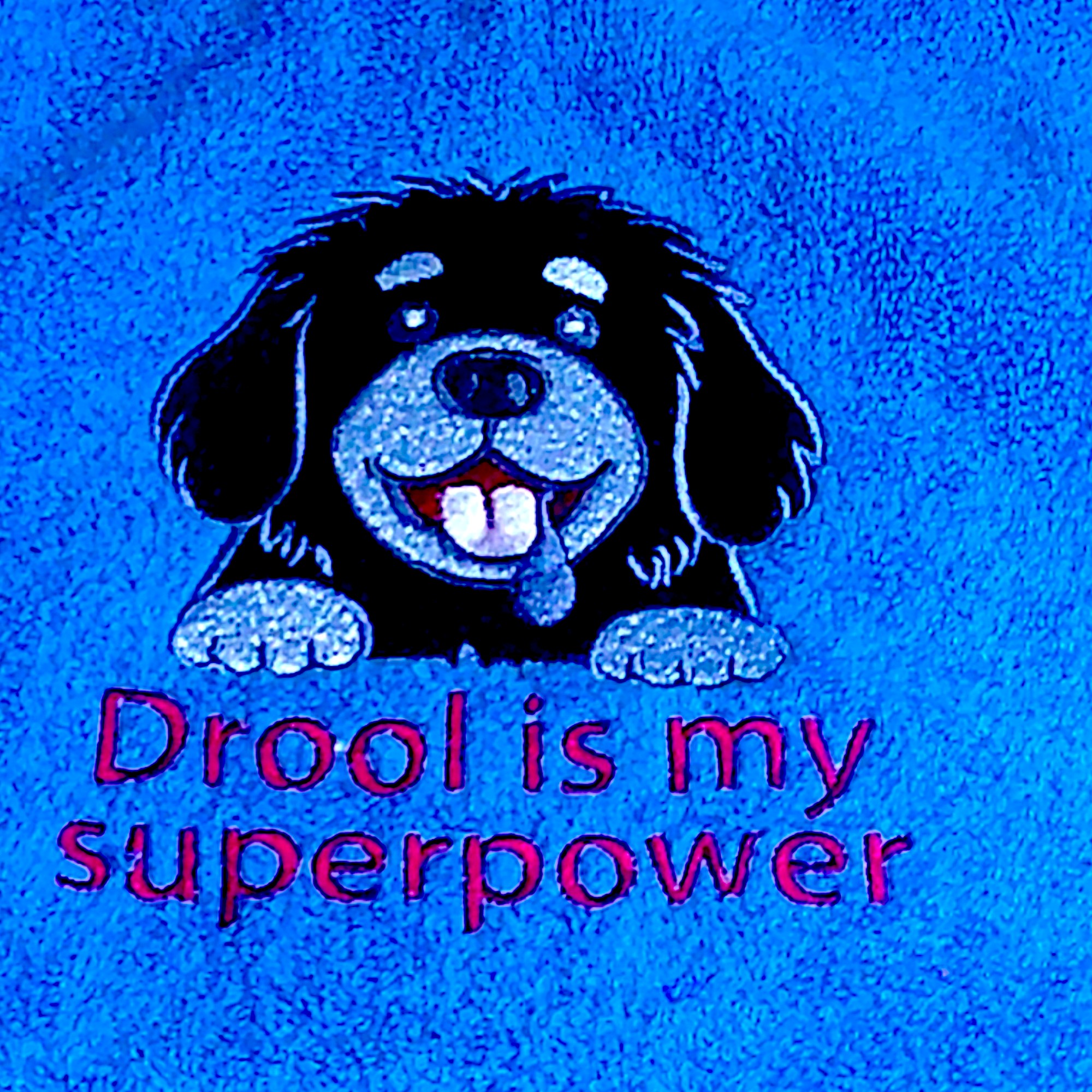 Funny Dog Bib – “Drool Is My Superpower” | Waterproof, Absorbent & Customisable Colours and Sizes |
