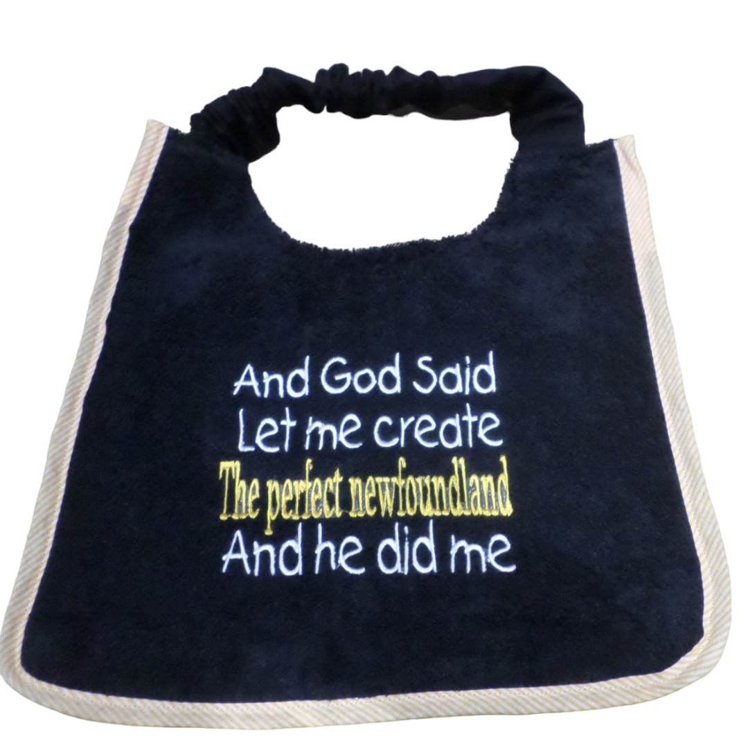 Make your gentle giant stand out with this heartwarming and humorous Newfoundland Dog Bib featuring the quote: