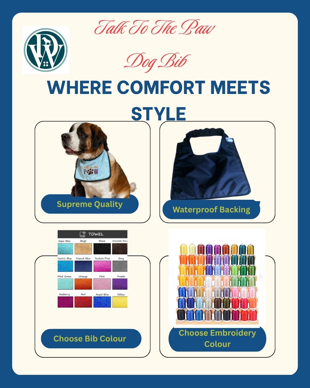 🧵 Custom Embroidery Options – Choose bib colour, thread colour, and size to suit your dog’s look.