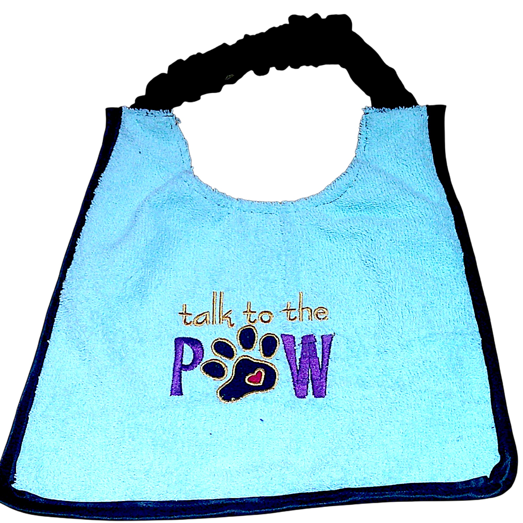 Add some personality to your dog’s wardrobe with our custom embroidered dog bib, beautifully stitched with the fun phrase “Talk to the Paw”. Each bib is handmade in the UK using premium towelling material and a waterproof backing to keep your furry friend dry and comfortable.